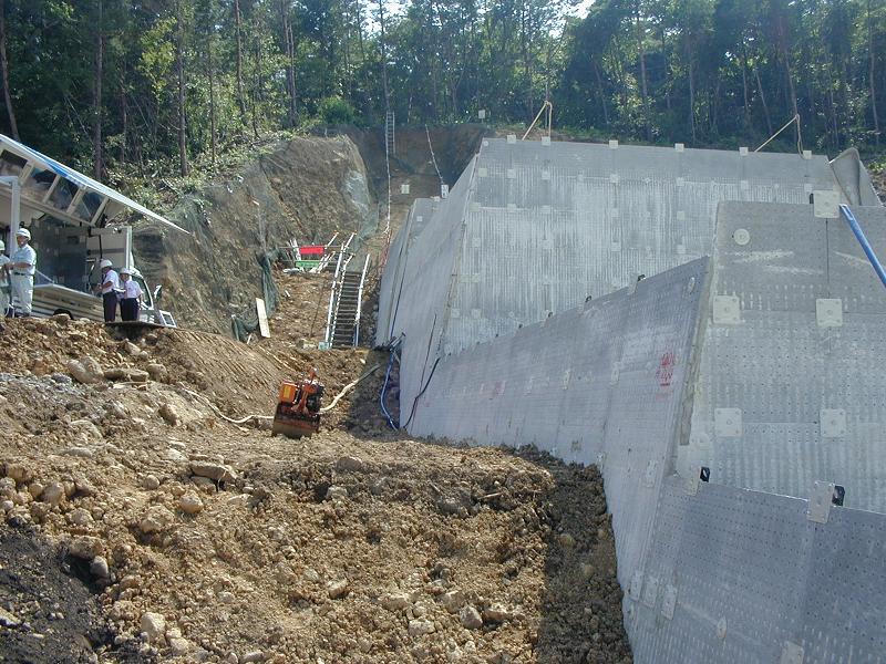 - 標準貫入試験ではN値10程度のため当初設計では置換えの計画だったそうです。しかし施工基面で平板載荷試験を実施したら支持力があったので、置換え無しで施工したとのことです。やはり現場試験は重要です。