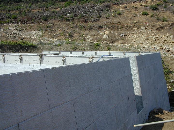- ブロックに分割して、コンクリートを打設している。