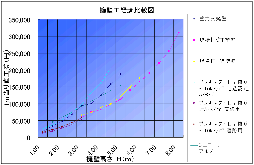 ※ 平成13年度に比較し、労務単価の下落・施工歩掛の変更に伴って現場打ちRC擁壁の単価が下がっている。
