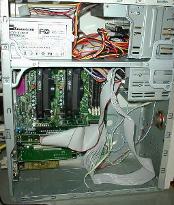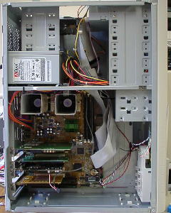 | 余った部品が溜まってきたのでマザーボードのみを新調して 組み立てました。 これまた2CPU。 ・エー・アイ・ソフト社のEasyFax2000を使用してFax受信 ・プリントサーバー ・Proxyサーバ ・メールサーバ 等で使用。 マウス・キーボードは繋いであるが、キーボード共有ソフトを 使用してメインマシンのキーボード・マウスで操作することが多い。 使用ソフト、使い方等は追々紹介する予定です。 |
