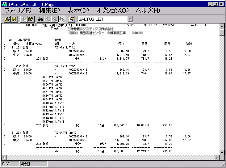 susr00で梁リストを出力する(プリンタはOFF状態でOK)