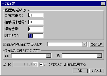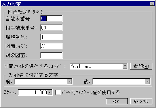 実寸法師のメニュー「ツール」−「SALTUS図面」−「入力」を実行するとまず端末番号等の