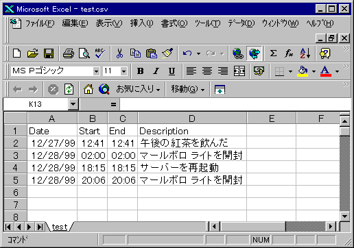 PC上でCSV変換した結果(ちょっと編集してあります)