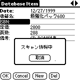 「さっきからSPT-1500って書いてあるけど、それってなに?」と思われた方もいらっしゃると思いますが、STP-1500とは株式会社オリンパスシンボルより販売されているバーコードスキャナ内蔵のPalmOS機です。スキャナを利用するには専用アプリが必要ですが、PalmIIIをベースとしているのでPalm用のアプリは殆ど稼動します。また、J-OS を導入すれば日本語化も行えるようです。詳しくはこちらをご覧ください