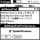 SPT-1500用に新規作成したものではないのですが「Memoへバーコード取りこめたら便利かな」と考えて、daMemoPad をSymbolユニットに対応させました。ちょっとした「バーコードのみ」をバシバシ取りこみたいときに威力を発揮するカモ、しれません。
