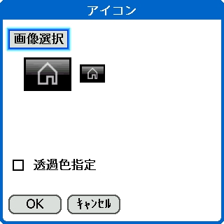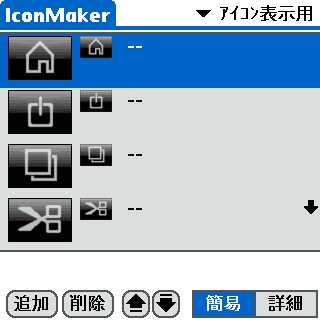 アイコンの一覧画面 簡易モードでは、1枚のビットマップ画像からアイコンを作成できます。 詳細モードでは、個別に画像や透過度を指定することができます。