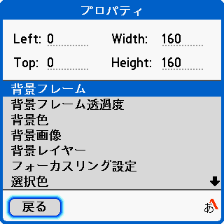 | 配置されている部品のプロパティ。ここから関連する編集項目へもアクセスできます(デザインタイプスキン用)。 | 項目アイコンの詳細。項目内のアイコン画像やラベルの配置を調整できます(デザインタイプスキン用)。 |