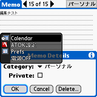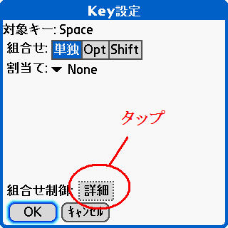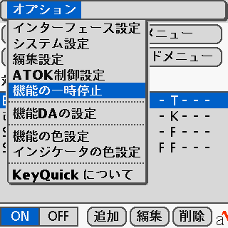 また、CLIE標準のキーボード機能としてCtrl+カーソル上下等がジョグ動作に割当てられていることから、KeyQuickをCLIEへ導入したときにはジョグに関連するカーソルキーは「フィールド外ではCtrl優先」が設定されています。