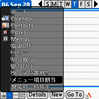 操作中の画面上に対して、メニュー項目選択をキーに割り当てる方法です。