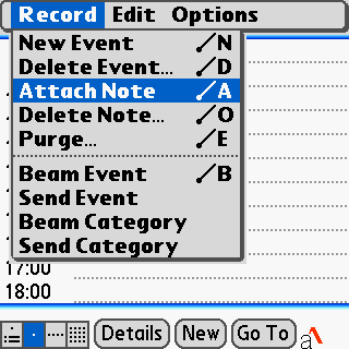 CalendarアプリケーションのDay画面で、Shift+改行を押下したときに「AttachNote」項目を選択するように割当ます。