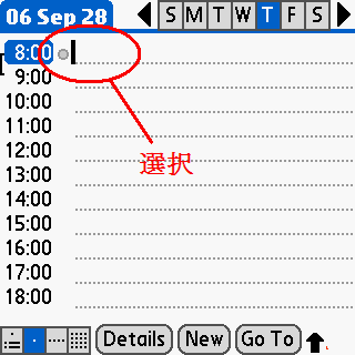 Day 画面で、時間を選択後にShift+改行 を押下する。※割り当てたキー操作を行う場合は、Shiftだけを押して離すことで