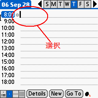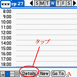 CalendarアプリケーションのDay画面で、Opt+改行を押下したときにDetailボタンをタップするように割当ます。