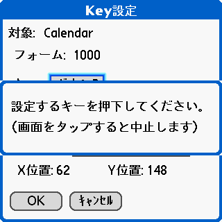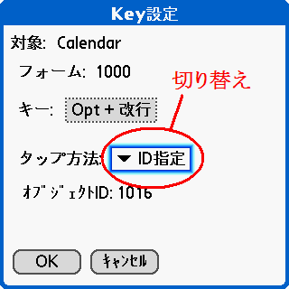 タップ位置の指定は、対象の大きさが小さい場合(たとえば、ポップアップリストを表示させる逆三角等)には、微妙なペン操作の違いにより正しい位置が指定されずに、キー割当を行ってもキー操作で上手くタップできないことがあります。そのような場合は、何度かリトライすることで位置の調整を行ってみてください。なお、同じフォーム上で同じキーに割り当てた場合は、そのキーの割当が上書されます。