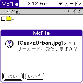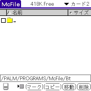 McFileは、PalmOS4.0 以降でサポートされているBtOBEXを利用します。よって、サポートできる環境としては、既にPEGA-MSB1等を利用して、ホーム画面からのファイル送受信が可能となっているような場合に限ります。その他の機器や環境では使用することはできません。