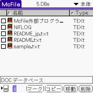 メモリーカード上テキストファイルとDOCデータベースへコンバート。McFileの送るに登録することにより一括変換も可能。