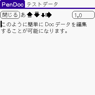 日本語対応のDocエディター。本体内部のDocデータだけでなく外部メモリーカード上のDocファイルも編集可能。