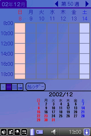 SlkCalendar は CLIE PEG-NX60/70V のシルクプラグインとして作成されたカレンダーです。どちらかというと、ためしに作ってみたというものなので単純にカレンダーを表示するしか機能はありませんが、以下のような特徴を持っています。