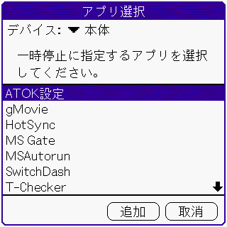 OS4.0 のホーム画面でサポートされたメモリーカード上のアプリケーション起動に対応するために、OS4.0 搭載機では /Palm/Launcher に保管されているアプリケーションを、直接一時停止アプリケーションとして指定できるようにしました。