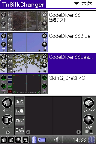 TnSilkChanger は高橋さん作成の SilkBuilder で作成された CSL 形式および、CodeDiver 付属の壁紙コンバーターで作成されたシルクスキンデータを切り替えるプログラムです。特徴としては