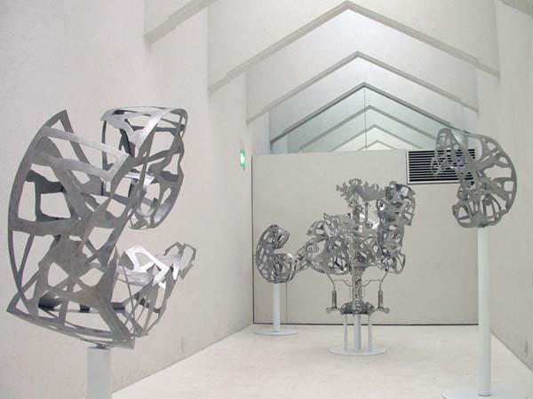 形を成さない雰囲気のようなものを、変質の少ない金属によって形をとどめたいということを考えて制作しています。今回、水のような霧のようなものをモチーフとして、そこから発生する感覚を形にしようとしています。