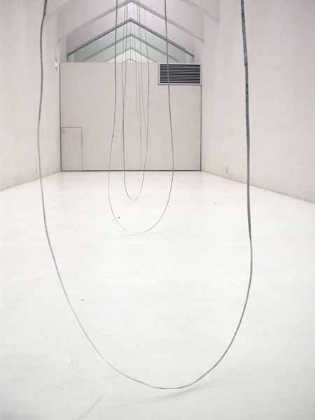 内容:屋内 / トタンによる立体をワイヤーで吊る