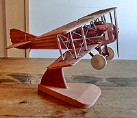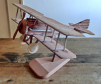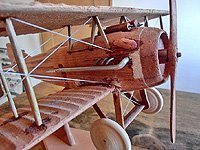 C木製、未塗装 複葉機 エキパイ、ワイヤーなど一部を除いてすべて、未塗装の木製です。 接着跡なども残っており、荒削りな感じの雰囲気のある一台です。