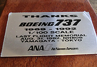B全日空商事 BOEING 737 1969-1992 1/100 LAST FLIGHT MEMORIAL 1992 Aug.31